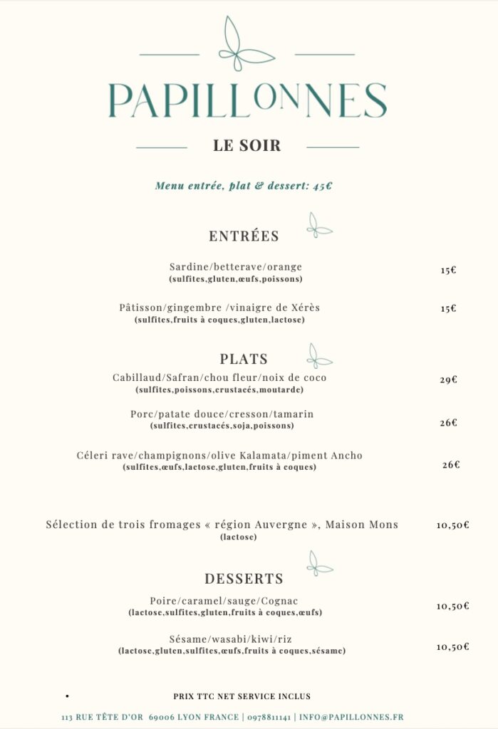 Prix net TTC / Service compris / Liste des allergènes disponible au bar / Origine des viandes: France